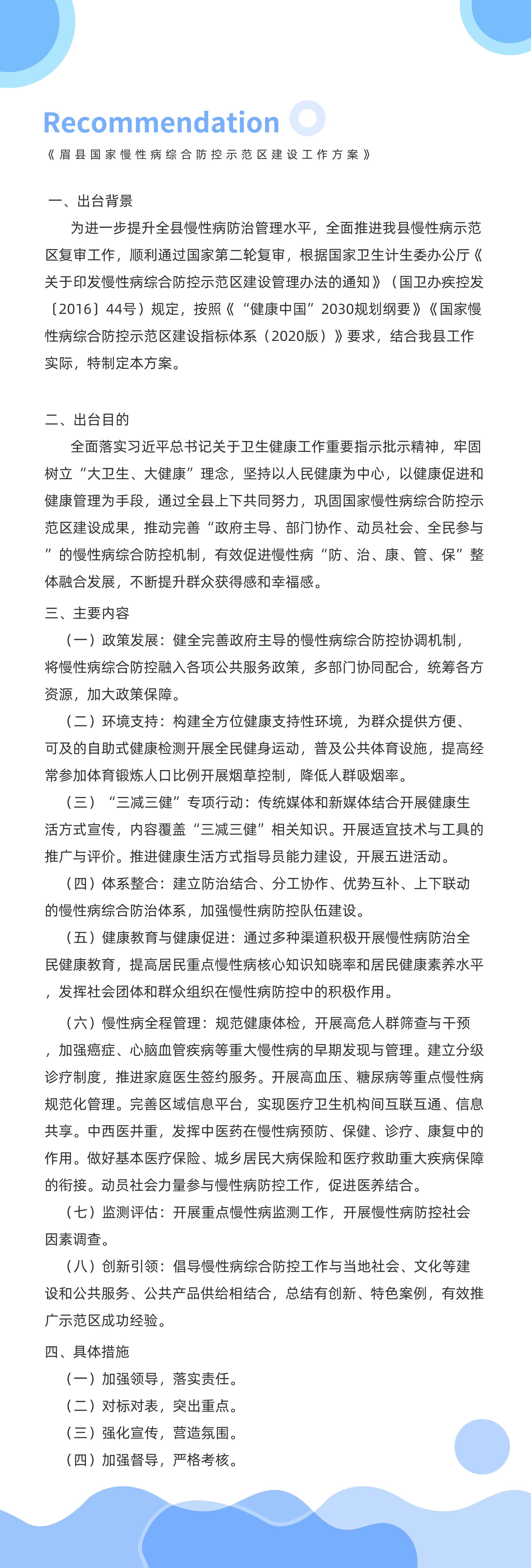 原文链接:眉县人民政府办公室关于印发《眉县国家慢性病综合防控示范区建设工作方案》的通知