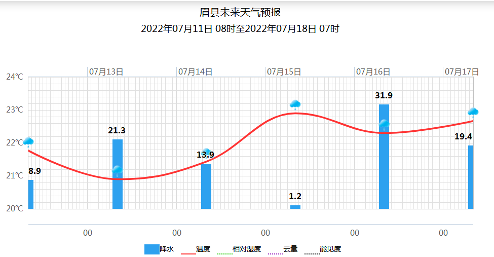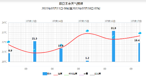 上周周平均气温30.1℃,最高气温39.5℃,出现在7月8日。无有效降水。