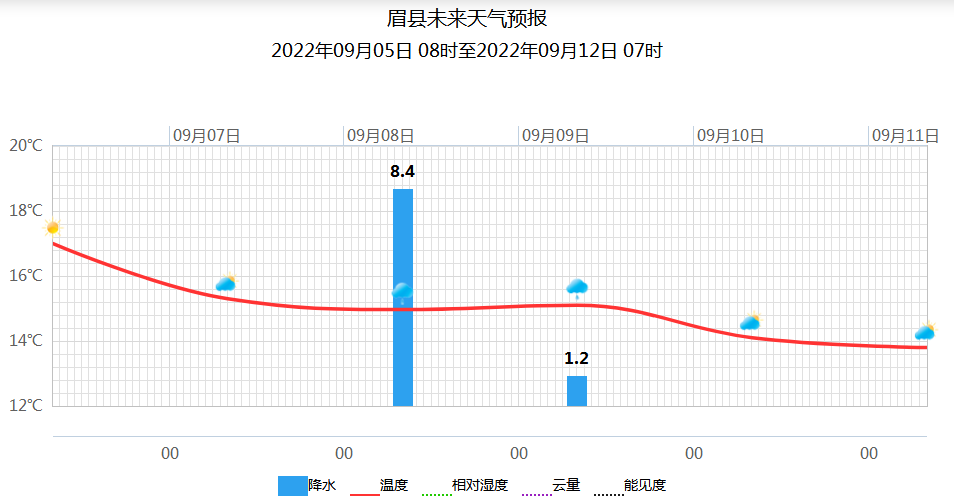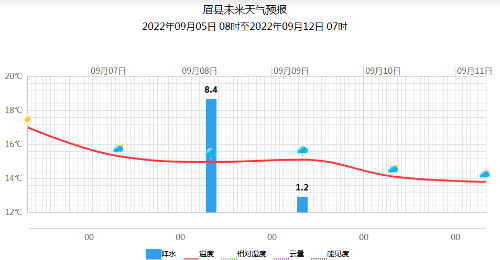 上周周平均气温20.9℃,最高气温30.1℃,出现在8月31日。9月3日出现降水天气,降水量18.3毫米。