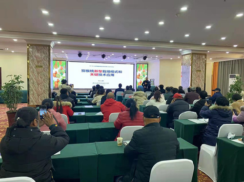培训会特邀猕猴桃技术体系首席科学家刘占德教授,西农大任小林教授分别就《猕猴桃新型栽培模式和关键技术应用》、《猕猴桃采后处理及贮藏保鲜关键技术》做了专题培训。下午,与会人员参观了齐峰生态农庄“四改五提升”示范基地,重点了解了猕猴桃全程机械化栽培管理模式和猕猴桃起垄改土栽培模式。观摩了禾和精品农业有限公司眉县猕猴桃基地,重点了解了猕猴桃高架牵引、人工防风障等新技术应用。