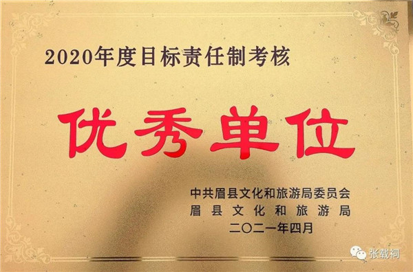 4月9日,全县文化和旅游工作会议召开,张载祠文管所荣获2020年度目标责任制考核优秀单位、2020年度争取国家投资工作先进单位两项殊荣。