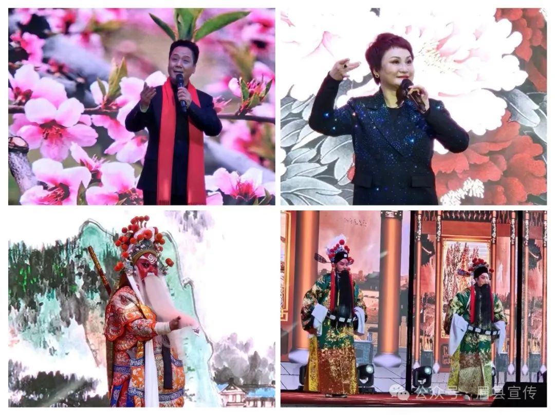 晚会由中共眉县县委、眉县人民政府主办,眉县县委宣传部、眉县文化和旅游局、眉县融媒体中心承办,宝鸡华远置业有限公司独家冠名赞助。邀请了中国戏曲梅花奖获得者李梅、李小峰、任小蕾、张蓓、魏小莉等名角参与演出,为全县人民带来了一道秦声秦韵艺术大餐。 整台晚会以秦腔、眉户为基调,节目内容丰富,形式多样,包括戏曲对唱、戏曲小品、秦腔联唱、少儿戏曲联唱等。现代秦腔名剧《大家喜欢》将革命英雄主义和革命浪漫情怀巧妙融合,彰显了浓郁地方特色和红色文化。《辕门斩子》《下河东》《王桂花纺线》《十二把镰刀》等经典秦腔剧目选段让现场观众徜徉在戏曲的海洋,如痴如醉。眉县第三小学戏曲社团小演员们精彩的戏曲联唱,充分展示了眉县戏曲界薪火相传、后继有人的繁荣景象。国家一级演员、梅花奖获得者李小峰演唱的《人面桃花》《打柴劝弟》;国家一级演员、梅花奖获得者李梅演唱的《杨贵妃醉酒》《状元媒》《迟开的玫瑰》更是将现场气氛推向高潮,华丽的阵容、铿锵的旋律,让现场观众直呼过瘾。