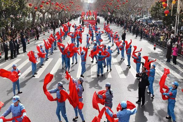 上午九时三十分,活动现场已是人头攒动、彩旗飘扬,伴随着铿锵有力的锣鼓声与清脆响亮的鞭炮声,社火队伍依次登场、有序行进。舞龙舞狮气势恢宏,长龙蜿蜒穿梭、雄狮昂首跳跃,一腾一跃、一摆一扑,尽显祥瑞之气;秧歌队彩扇翻飞,红绸劲舞,灵巧舞步中传递喜乐安康;非遗走秀匠心独运,将剪纸等非遗元素融入现代走秀,让古老技艺在街头焕发出时尚魅力;划旱船、跑竹马扮相生动、妙趣横生,表演者穿行嬉闹,引得街头巷尾欢声笑语不断。