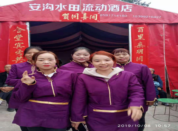 于是,在帮扶干部和村干部的帮助下,崔帮朝小额信贷5万元,成立服务队并开展宣传推广,自此走上了自主创业的致富道路。经过几年的努力,崔帮朝家宴服务队规模不断扩大,家庭收入也不断提升,2016年实现了稳定脱贫。值得一提的是,饮水思源的崔帮朝一人致富不忘乡亲,他的服务队优先使用本村及邻村贫困家庭剩余劳动力,30多人的团队中,有近三分之一的人是贫困户,加入家宴服务队后,平均每人年收入达到1.3万元,先后实现了脱贫。张新侠就是受惠贫困户之一,她总说:没有服务队就没有我的今天,我要在团队里干一辈子。朴实的话语展现的是一颗感恩的心。