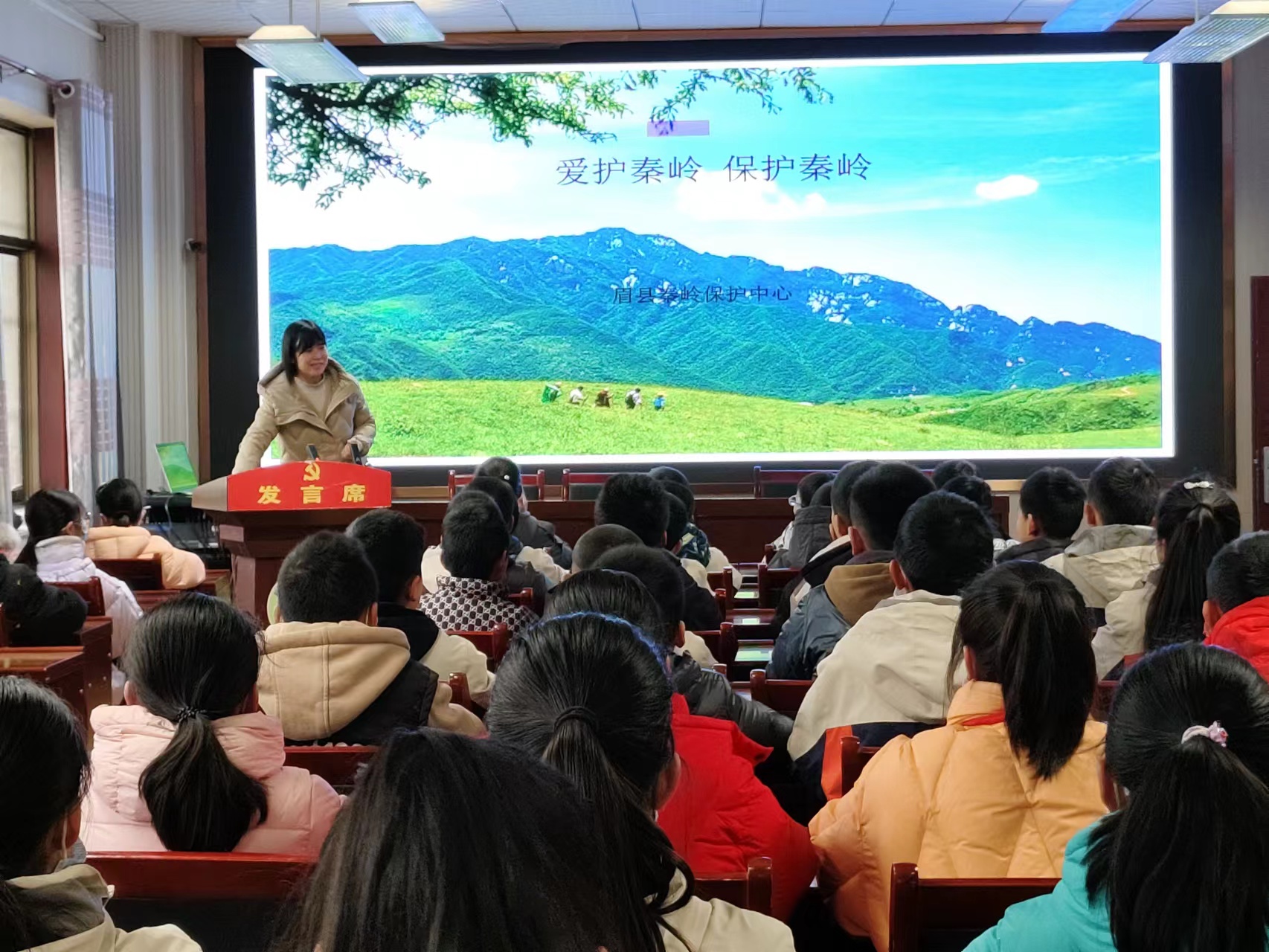 1月19日,眉县发展和改革局秦岭生态环境保护中心副主任方红霞走进眉县第二小学,为六年级全体师生做了一场《爱护秦岭 保护秦岭》的主题讲座,让保护秦岭生态环境意识在孩子们心中扎根,并以此带动一个个家庭及社会成员共同保护秦岭。