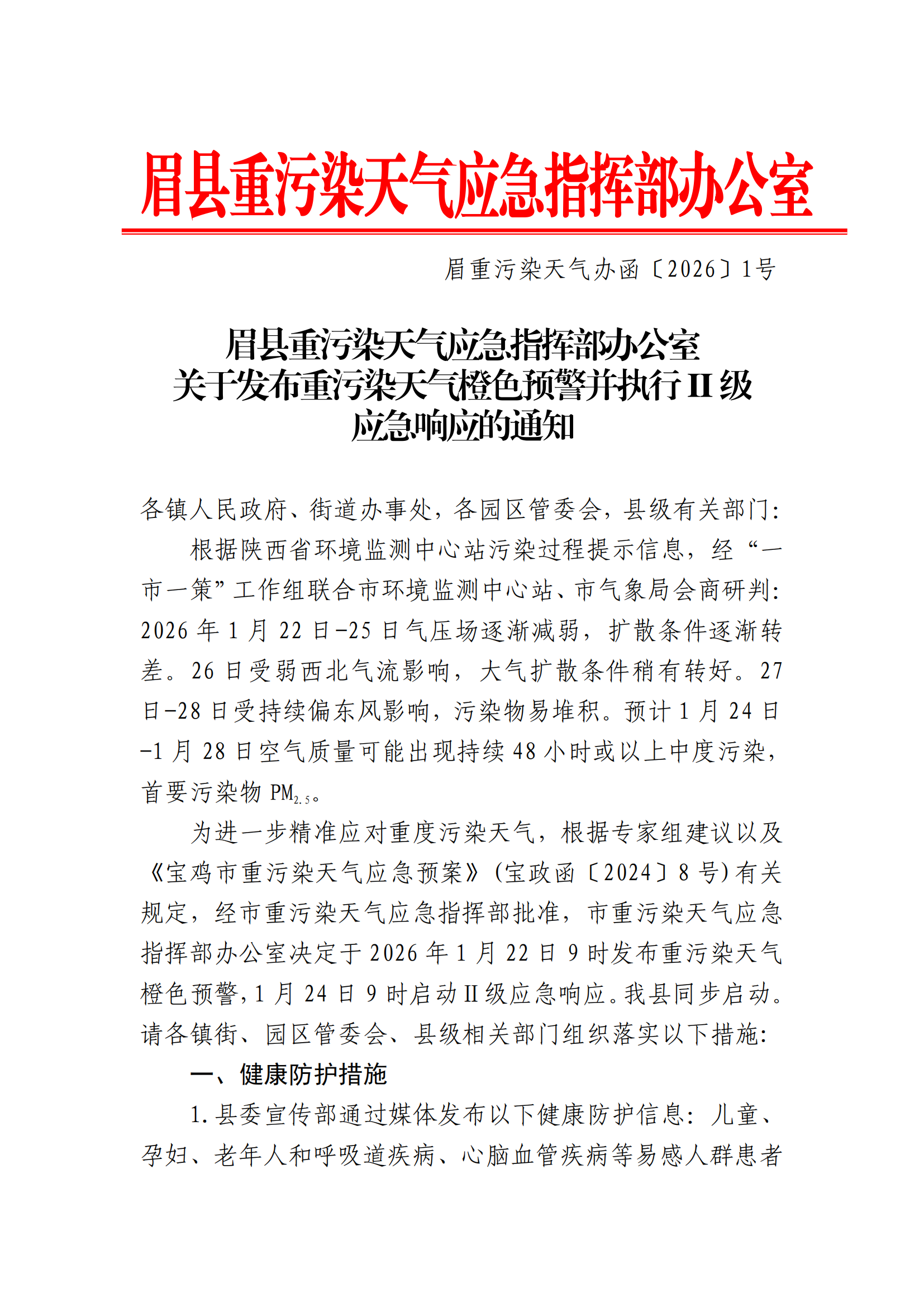 关于发布重污染天气橙色预警并执行II级应急响应的通知