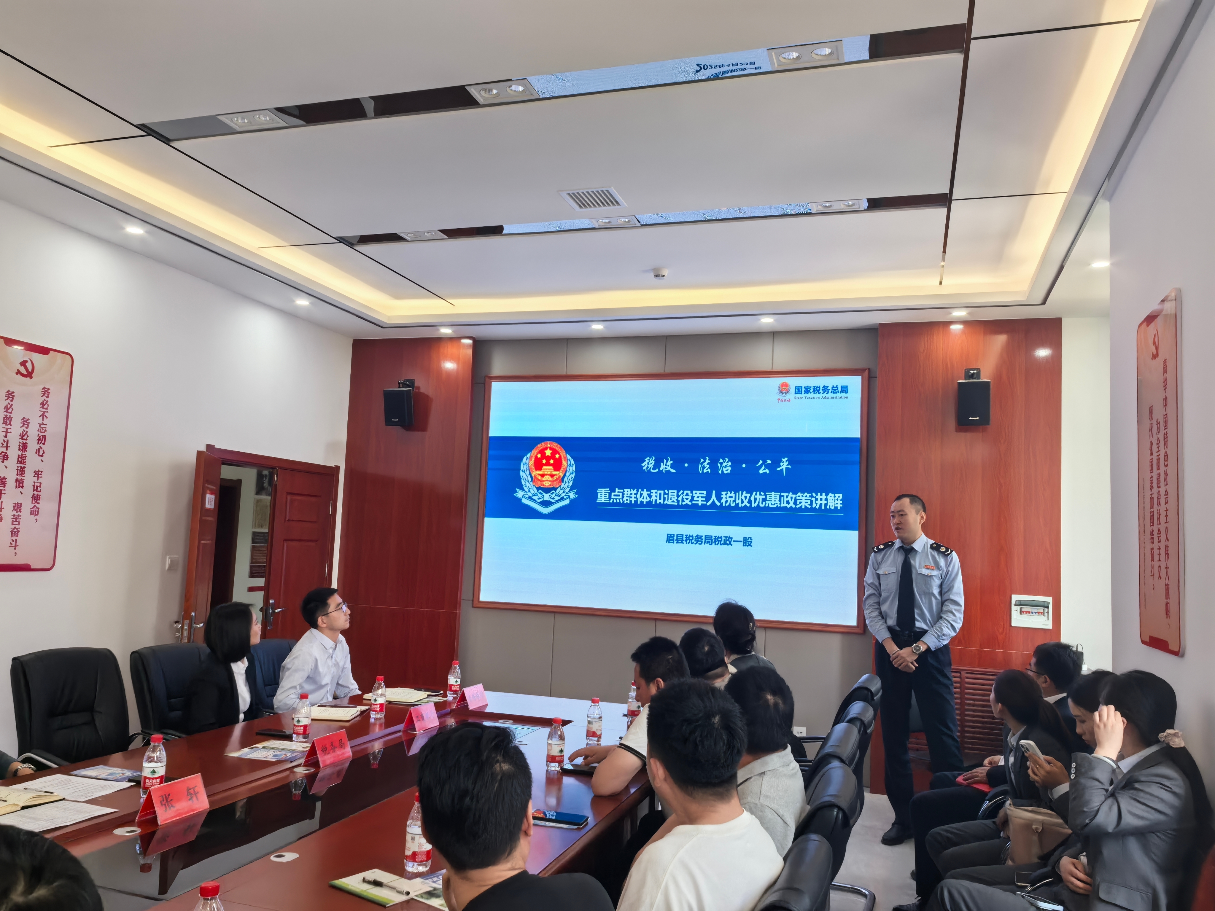 为进一步提高退役军人对重点群体就业创业税费优惠政策知晓度,切实助力眉县退役军人创业就业,近日,国家税务总局眉县税务局以“便民办税春风行动”为抓手,与眉县退役军人事务局协同开展税收政策宣讲,聚焦重点群体就业创业需求,延伸服务触角,通过“政策+服务”双管齐下,助力重点群体轻装前行,为稳就业、保民生添能赋力。