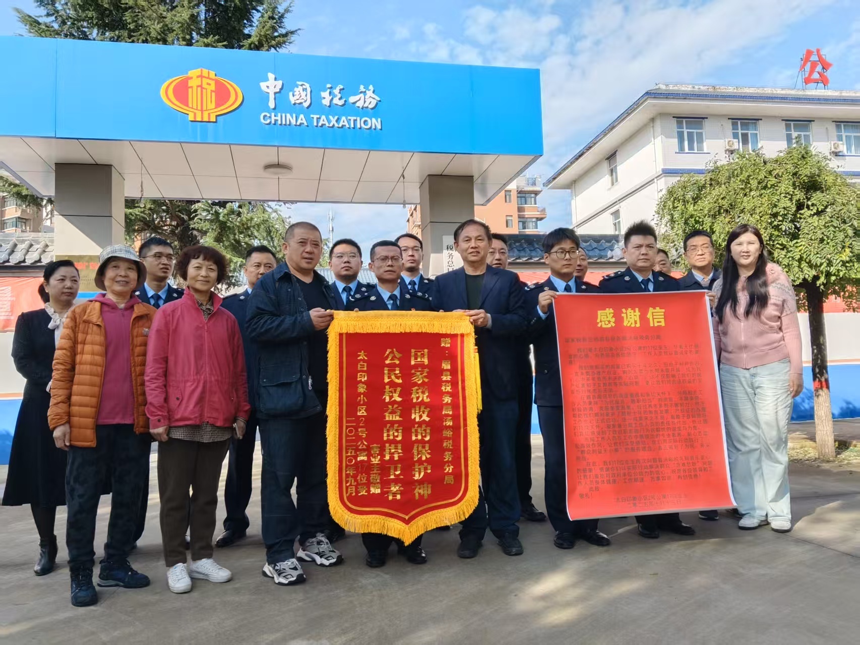 “这一成果来之不易,有赖于县局领导的持续关怀,凝聚着分局工作人员的责任与付出,也让我们真切感受到了政府职能部门为民解忧的温度与力度。”10月13日,国家税务总局眉县税务局汤峪税务分局收到太白印象小区2号公寓17位业主集体送来的一封感谢信与一面锦旗,字里行间表达了对税务部门用真诚服务高效解决其困难问题的充分感谢与肯定。