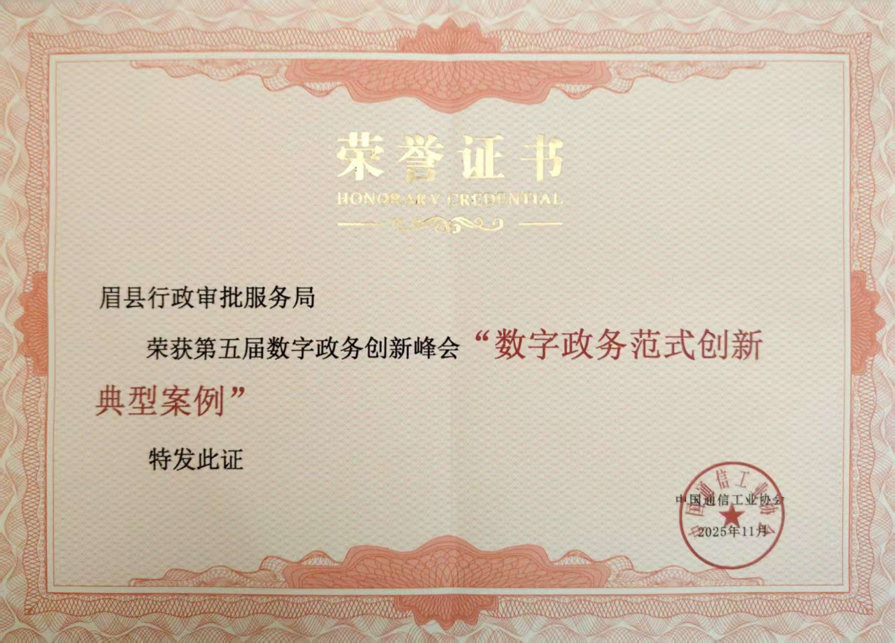 11月12日至14日,第五届数字政务创新峰会暨“人工智能+高效办成一件事”实训班在北京举行,眉县行政审批服务局报送的《“三化赋能”聚力提升市场主体“活力值”》案例,经峰会组委会专业评审,成功入选“数字政务范式创新典型案例”,获评全国政务服务创新实践标杆。