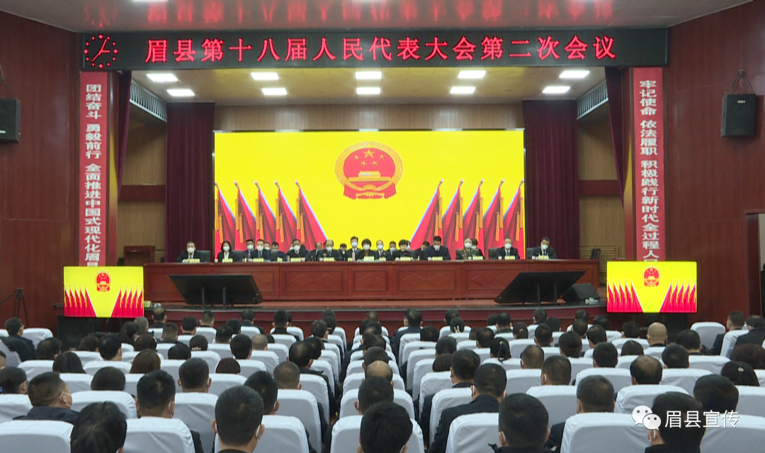 在圆满完成各项议程后,眉县第十八届人民代表大会第二次会议在雄壮的国歌声中落下帷幕。