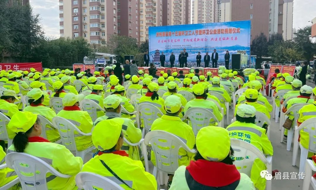 10月25日下午,我县举行庆祝第十五届环卫工人节暨环卫公益活动捐赠仪式。县长张小平,县人大常委会主任戴慧萍,县政协主席曲永宏,县委常委、副县长王富强参加活动。