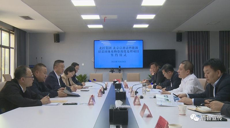 10月26日,北京控股环境集团有限公司、北京启迪清燃能源环境科技有限公司眉县固体废物资源化处理项目合作框架协议签约仪式在我县举行。县长张小平,副县长祁亚军;北京控股环境集团有限公司董事长、党委书记柯俭,副总裁许家琪,规划与投资部总监云松;北京启迪清燃能源环境科技有限公司西部大区总经理张国元,副总经理杨红昌参加签约仪式。