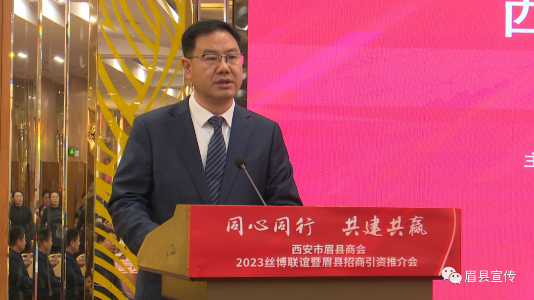 11月19日上午,以“同心同行·共建共赢”为主题的西安市眉县商会2023丝博联谊暨眉县招商引资推介会在西安举行。眉县县长张小平主持推介会。