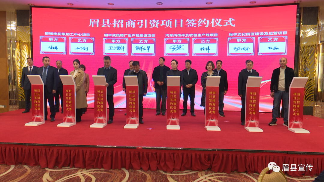 签约仪式上,眉县共签约投资26亿元的分布式风电等12个项目,总投资58.1亿元,涉及猕猴桃、汽车零部件、文旅康养、新能源等多个领域。