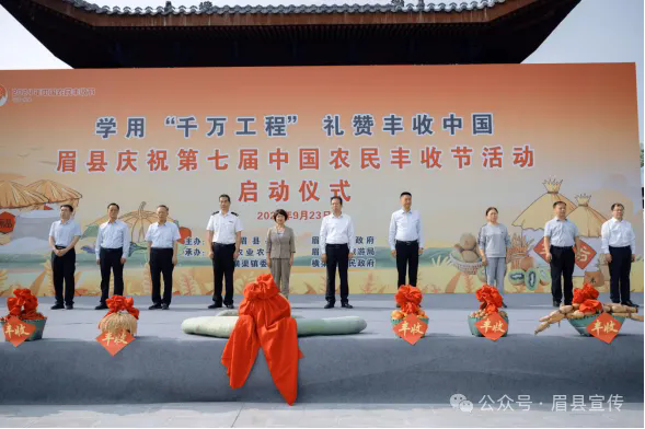 9月23日,“学用‘千万工程’·礼赞丰收中国”眉县庆祝第七届中国农民丰收节活动在横渠镇河滩村张子文化街区举行启动仪式。眉县县委书记王继萍宣布活动启动,县委副书记齐永宏讲话,县委常委、常务副县长任博主持活动。