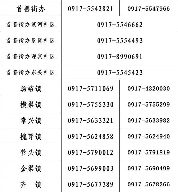 各镇街疫情防控专线电话: