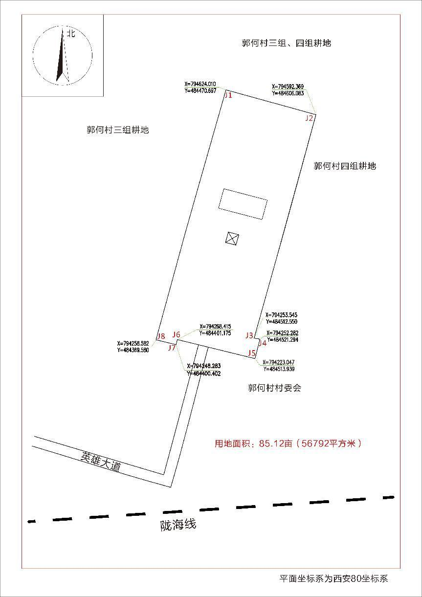 四、保护范围:扶眉战役烈士陵园位于眉县常兴镇环镇北路070号,占地面积56792平方米。保护范围为扶眉战役烈士陵园现有围墙以内,具体为东南西北各个方向界址点连线为界(见附件),东:J2-J5连线为界;南:J5-J8连线为界;西:J8-J1连线为界;北:J1-J2连线为界。
