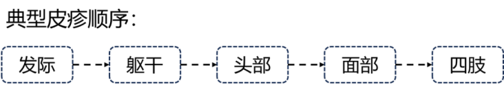 轻微发热,局部皮肤分批出现丘疹、疱疹,然后形成结痂。典型的水痘皮疹按发际、躯干、头部、面部、四肢的顺序发展,皮疹分布呈躯干多四肢少的特点,伴瘙痒,而且皮疹分批连续出现,同一部位可见不同时期皮疹,还可波及口腔、鼻子、眼睛和外生殖器。