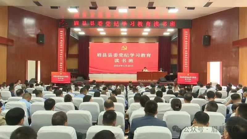 4月28日,眉县县委党纪学习教育读书班正式开班。县委书记王继萍参加并讲授专题党课,县长张小平主持,所有在家县级领导参加读书班。