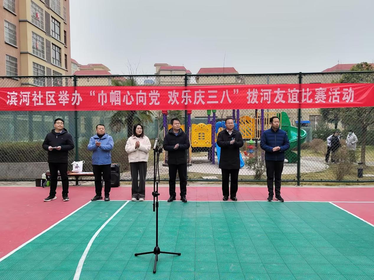滨河社区组织开展首届“巾帼心向党 欢乐庆三八”拔河友谊比赛活动,比赛现场气氛热烈,场边助威的居民为参赛选手加油呐喊!活动展示了社区群众的良好精神风貌,同时,也增进了邻里之间的友谊,进一步提升了社区凝聚力。