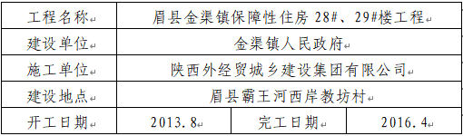 陕西外经贸城乡建设集团有限公司承建的眉县金渠镇保障性住房28#、29#楼工程已完工,现申请办理农民工工资保证金退还手续。根据《宝鸡市农民工工资支付保证金管理办法》(宝政发〔2017〕2号)文件规定,现予以公示。公示期为:2026年1月30日至2026年2月28日。