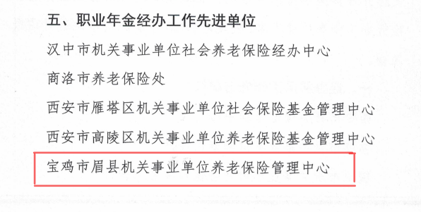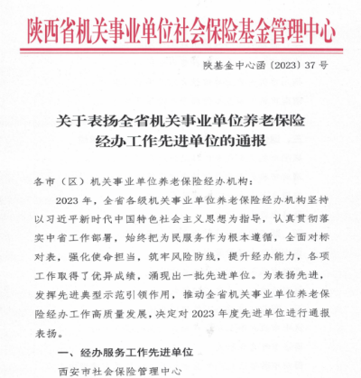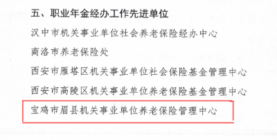 近年来,我县机关事业单位养老保险管理中心在人社局党委的正确领导下,认真落实中省市县两会和人社工作会议精神,以“三个年”活动为抓手,坚持以人民为中心,围绕中心工作,全面提升经办服务水平,扎实锻造干部过硬作风,为参保单位和退休人员提供更加优质、便捷服务。在工作质效上求创新、在服务能力上敢担当、在工作细节上下功夫,持续深化机关事业单位养老保险制度改革,提升精细化管理服务水平。高效推动目标任务完成和各项工作出色出彩,分别荣获省级“职业年金经办先进单位”;市级“经办服务工作先进单位”、“疑点数据专项整治工作先进单位”和“职业年金经办工作先进单位”等荣誉称号。