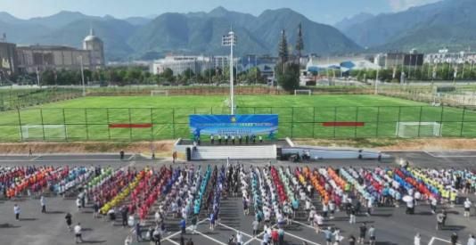 7月14日上午, 2025年宝鸡市青少年校园足球联赛市级决赛暨“三大球”运动会开幕式在全新建成的眉县太白山足球场举行。市教育局副局长杨爱魁,市体育局副局长龚钰鹏,太白山旅游区管委会主任张新林,县委常委、宣传部部长麻承志,太白山旅游区管委会副主任李海军,眉县教育体育局党委书记刘晓军,眉县教育体育局局长黄武奇,宝鸡市体育局竞技体育科科长魏敬辉参加开幕式。开幕式由市教育局基础教育科科长李强英主持。
