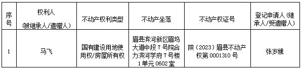 根据《不动产登记暂行条例实施细则》第十四条的规定,经初步查验,不动产登记机构拟对下列不动产权利办理不动产继承登记。根据《不动产登记暂行条例实施细则》第十七条的规定,现予公告。如有异议,请自本公告之日起 30 日内,将异议书面材料送达不动产登记机构。逾期无人提出异议或者异议不成立的,不动产登记机构将予以登记。