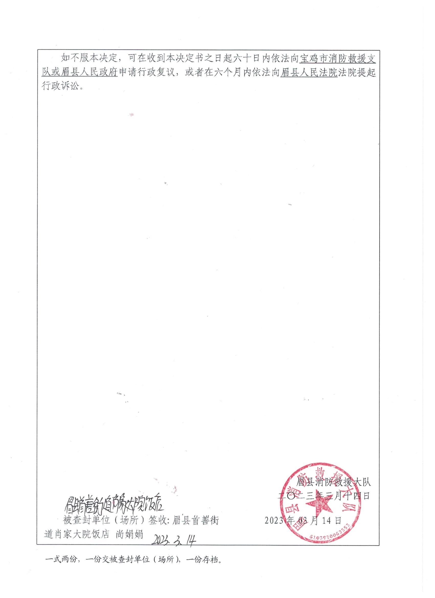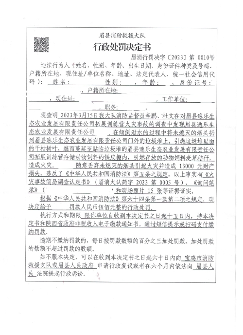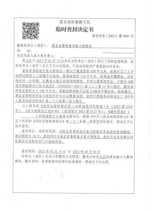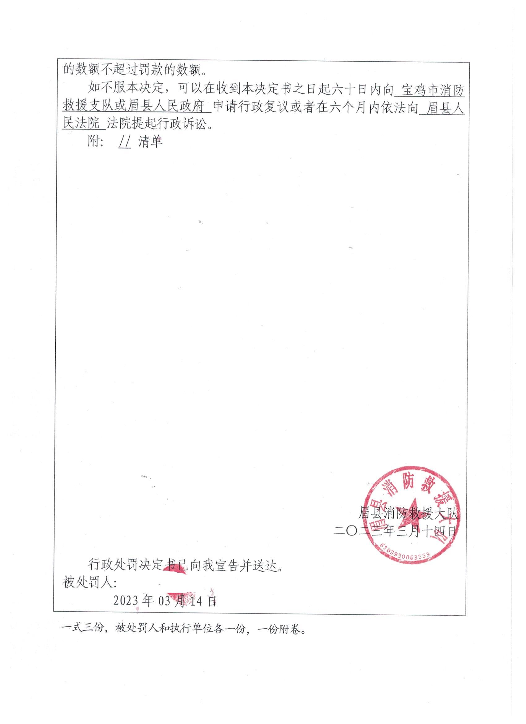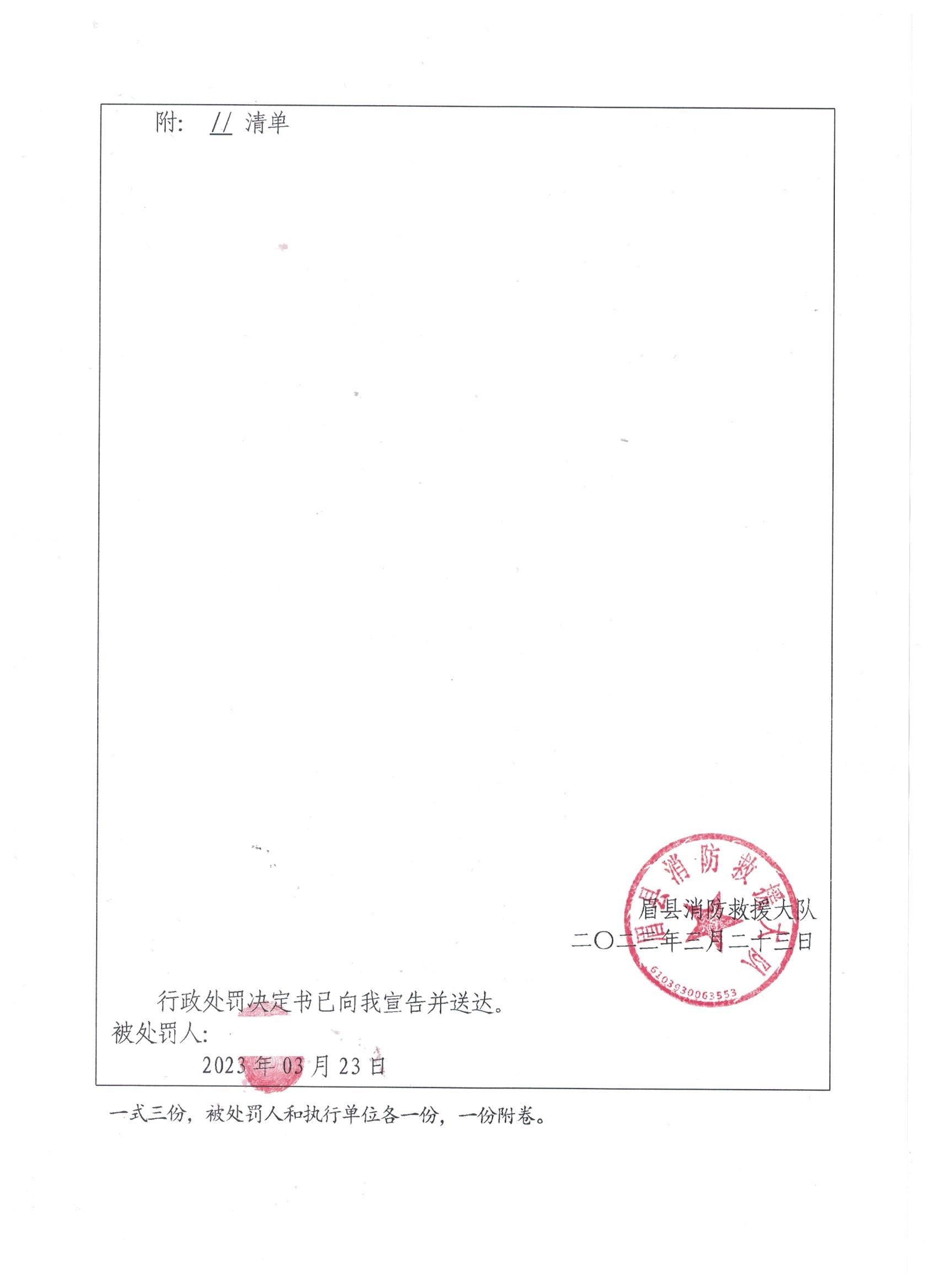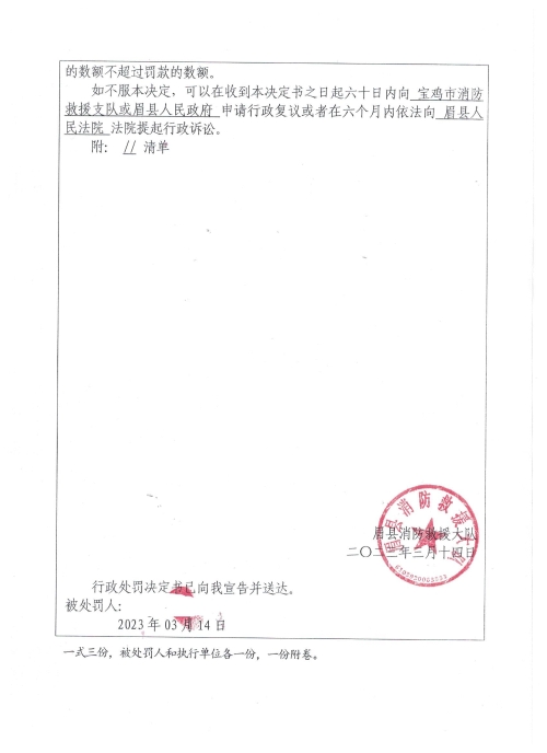 眉县消防救援大队2023年3月份行政处罚及行政许可执法公开