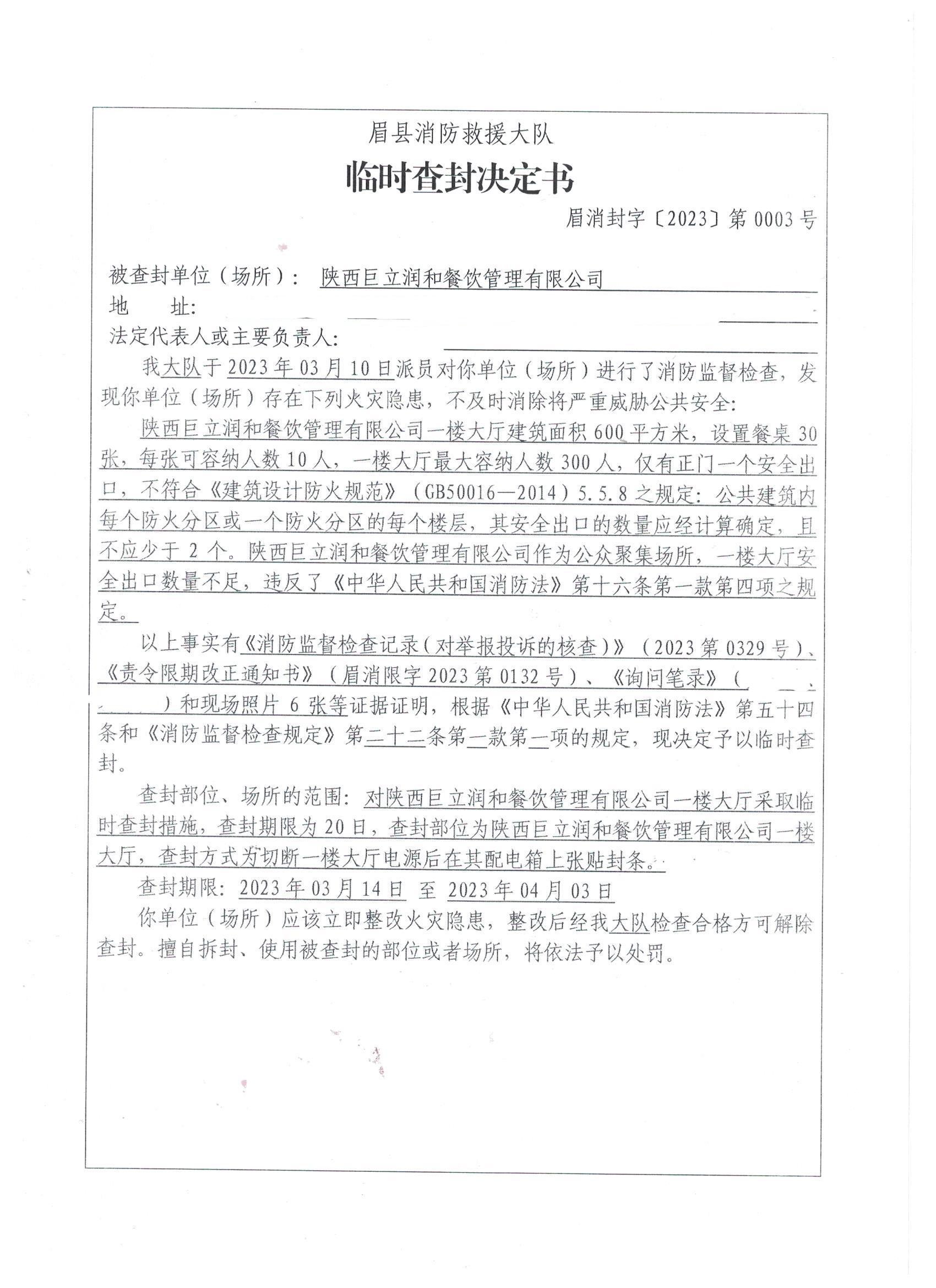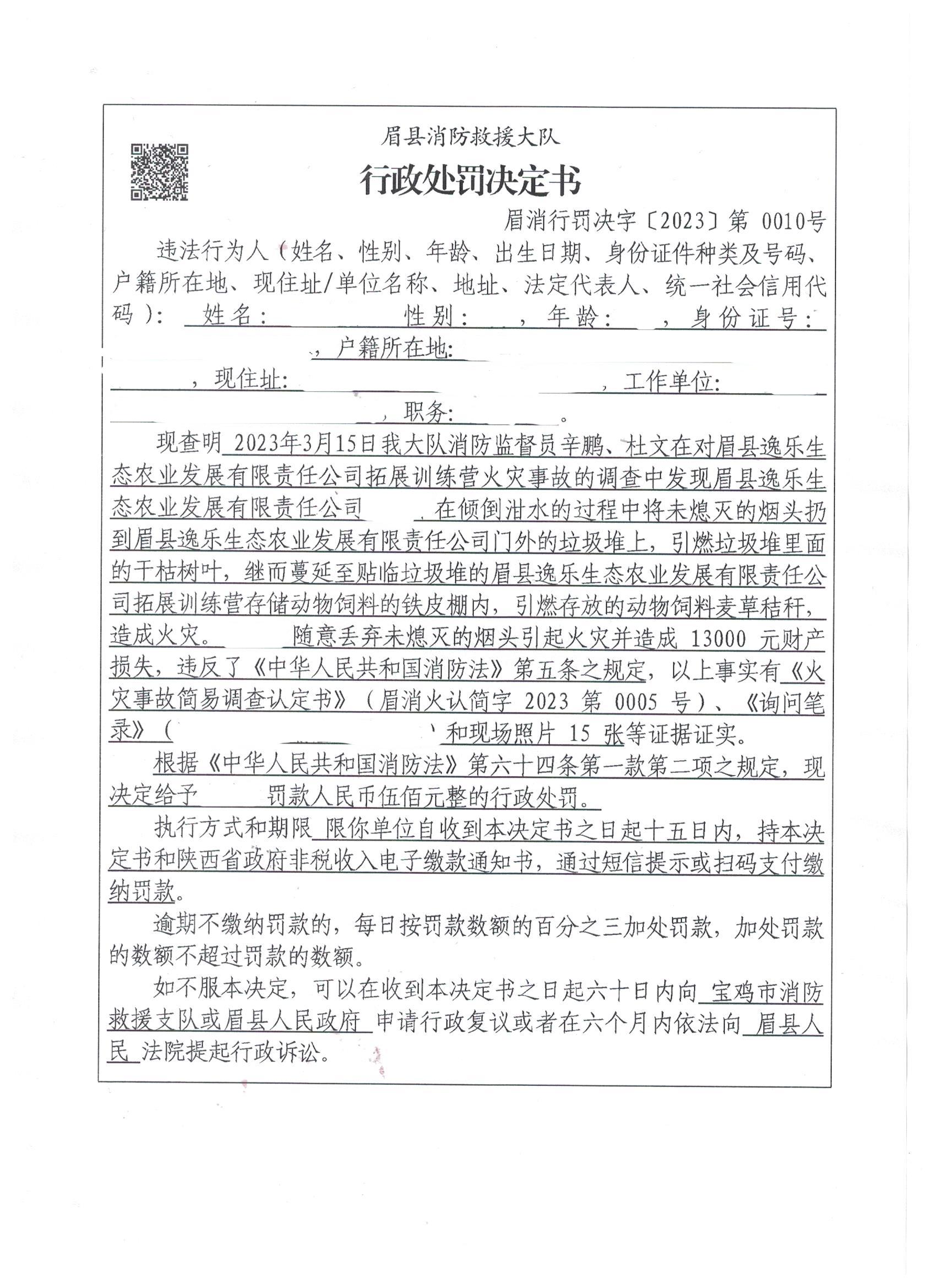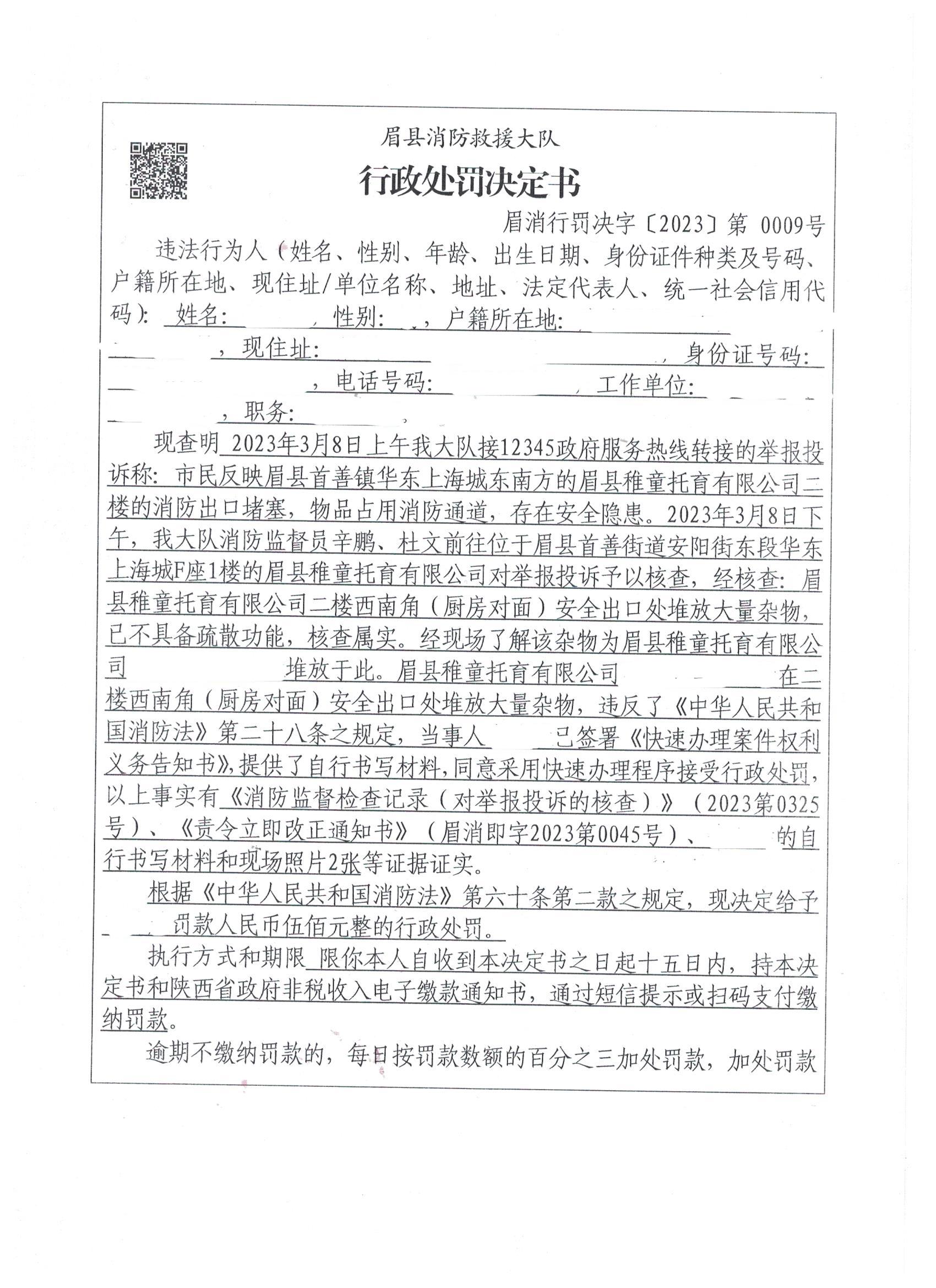 眉县消防救援大队2023年3月份行政处罚及行政许可执法公开