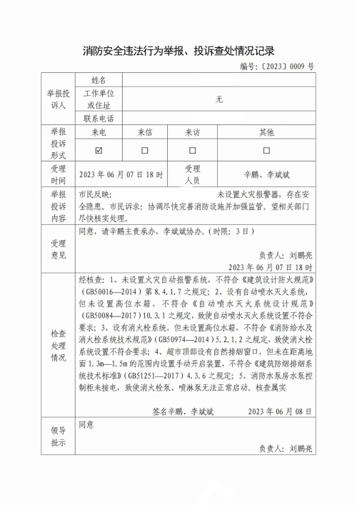 眉县消防救援大队2023年6月消防违法行为举报投诉、奖励网上公示公开