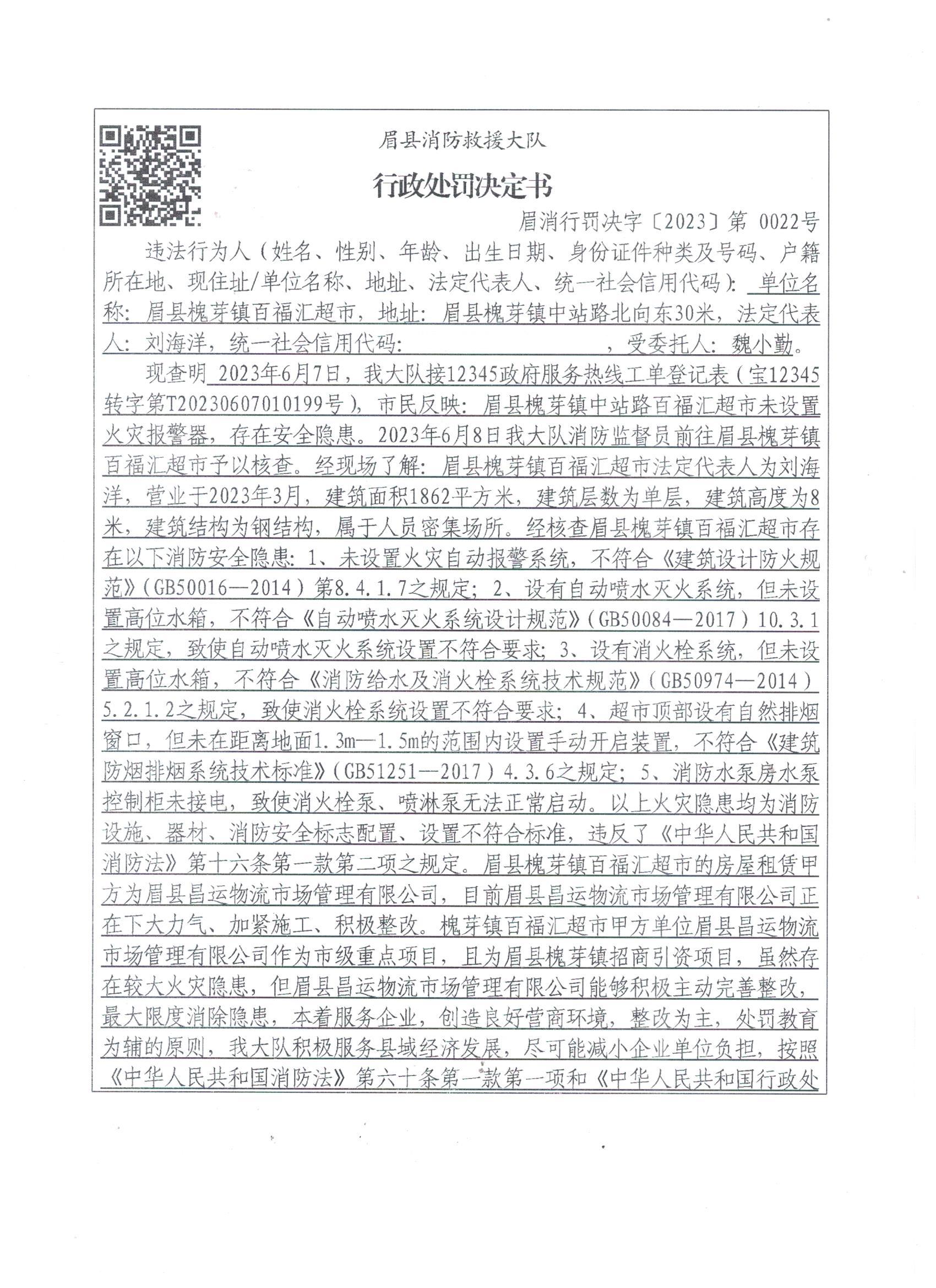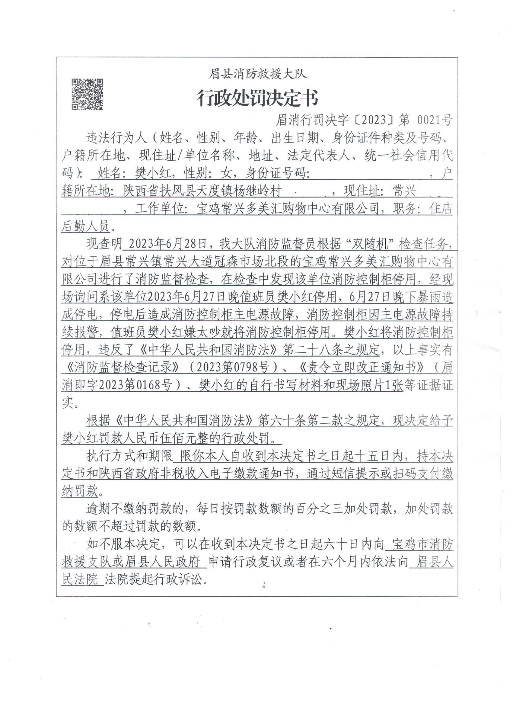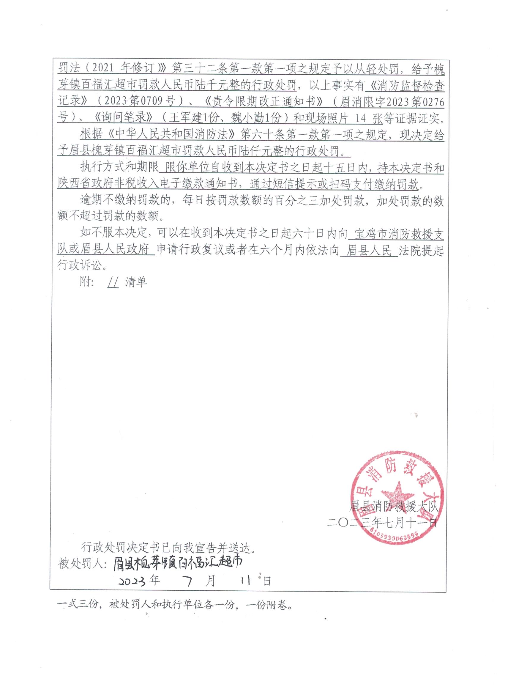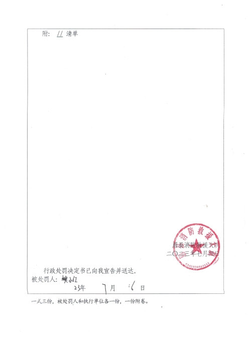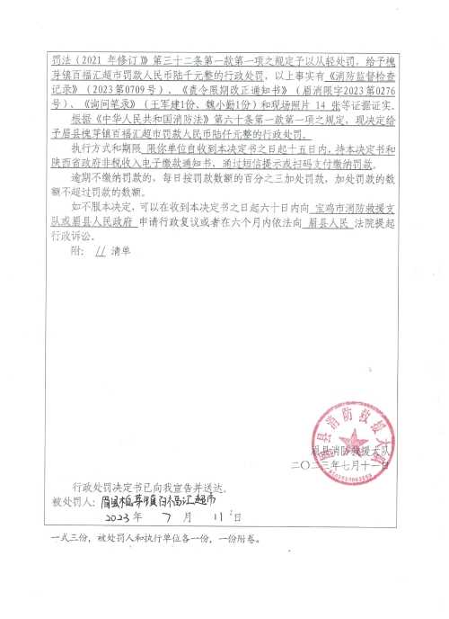 眉县消防救援大队2023年7月份行政处罚及行政许可执法公开