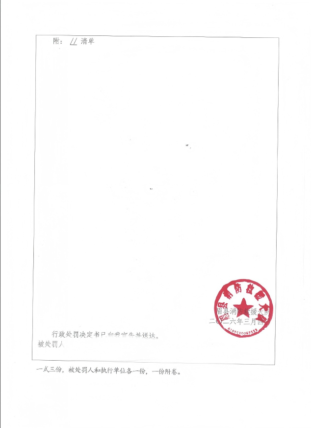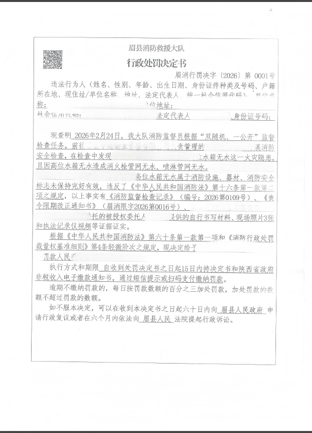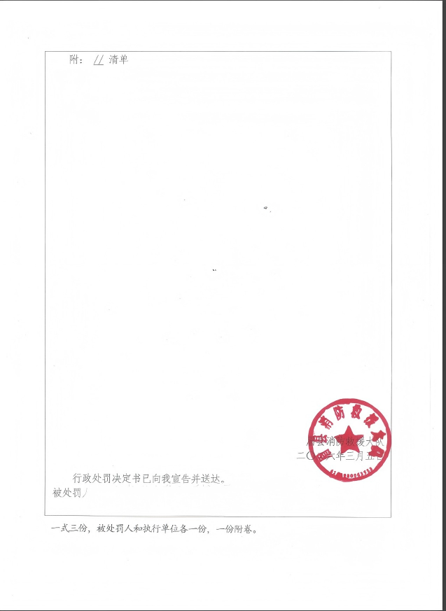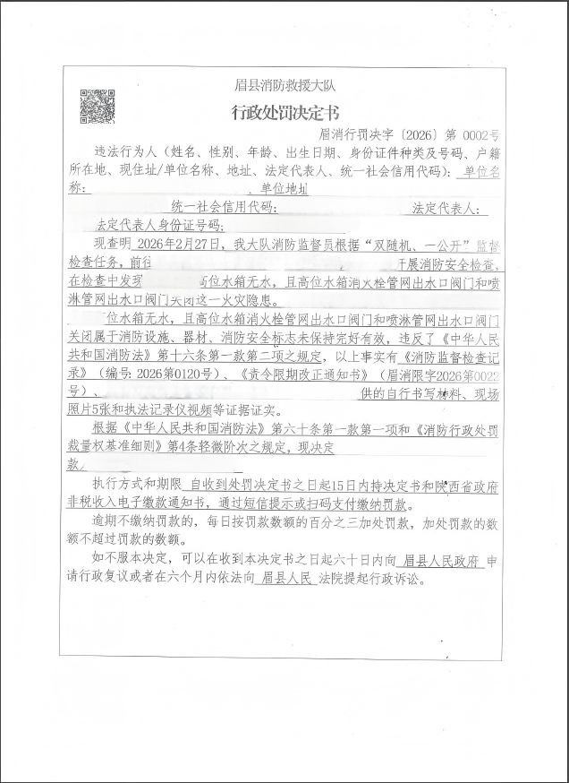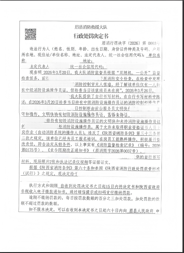眉县消防救援大队3月份行政处罚公开